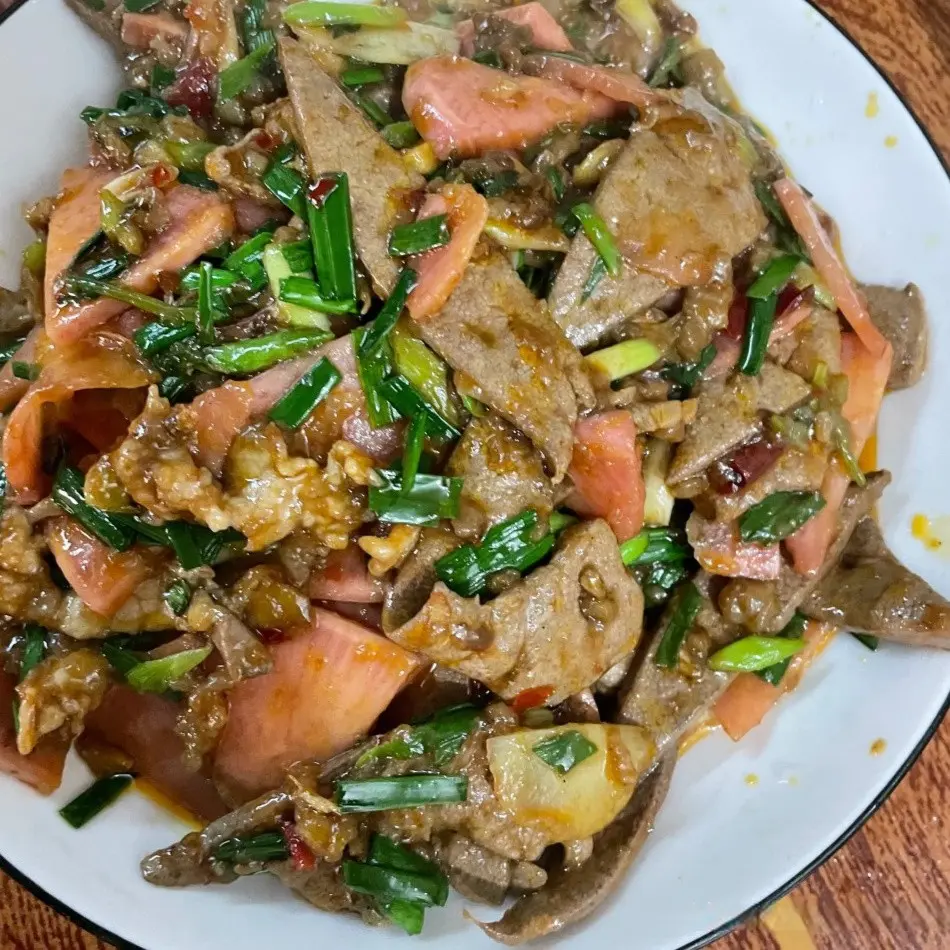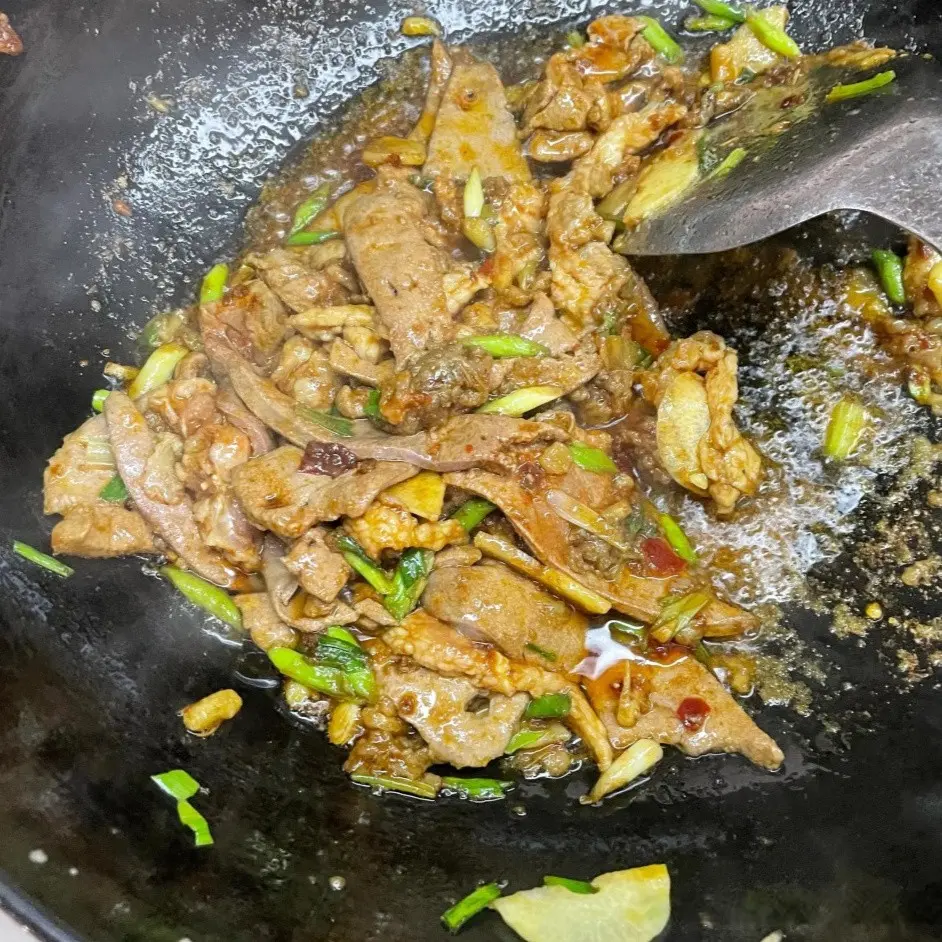 再搭配一些蒜苗姜丝和蒜片,炒出来的猪肝特别入味,口感丰富。猪肝切成薄片加淀粉腌制一下,这样会更嫩滑,锅底加了豆瓣酱,所以炒出来颜色浓郁,香味醇厚,猪肝脆而不膻,火候掌握得很好,加上好吃的泡菜,再撒点香菜,红红绿绿颜色诱人,真是酸辣可口特别下饭。